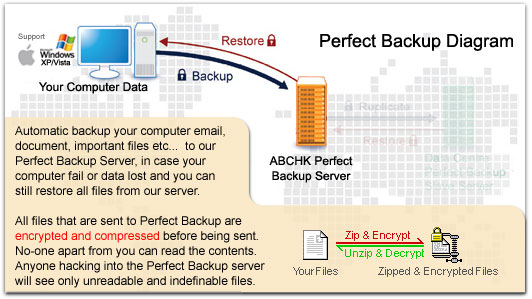 out in a secure environment. Perfect Backup uses the secure 128 bit SSL connection